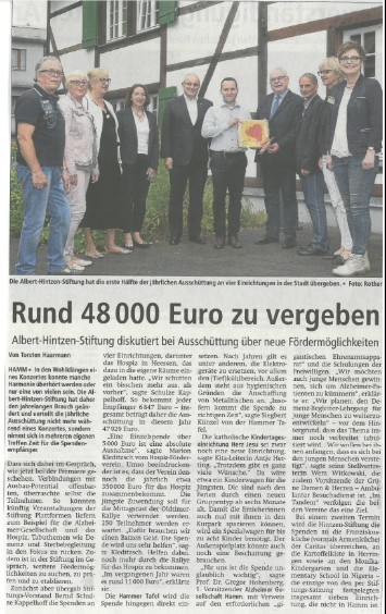 Das schreibt die Presse über uns: Spende u. a. auch für die Alzheimer Gesellschaft Hamm e. V.